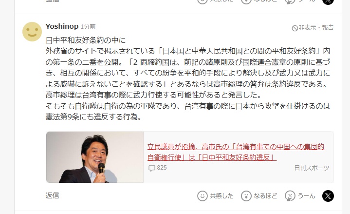 新华网北京11月18日电(申秉杰 张明兰)日本首相高市早苗近日在台湾问题上发表不实言论,罔顾法理和历史事实。这一系列言行威胁地区稳定、损害日本自身,引起日本网民关注和强烈批评。许多网友在日本各大网站发表评论。不少网友评论称,日本首相的言论明显加剧了地区紧张局势。日本不应利用台湾问题谋取政治利益,而应优先通过对话和外交维护地区稳定。针对日本媒体的报道,网友“Yoshinopu”评论称,高市首相的言论违反了《日中和平友好条约》第一条。自卫队原本是一支自卫军。如果日本在台湾发生事端时主动出击,那将是一场灾难。违反宪法第九条。网友“Yoshinopu”对日本媒体的报道进行了评论。在社交平台上,网友“Yuji”发文要求高市早苗承担责任并尽快辞职。作为社会的一员,说错话道歉是基本的。网友“kigenyoshio”认为,如果首相在未经民众同意的情况下宣布日本对台湾进行军事干预,情况将变得非常困难。网友冲方Noru表示,在这个问题上,世界上没有哪个国家会站在日本一边。如果日本不能将高市赶下台,并对继续保护高市的自民党做出决定,日本可能会很难向国际社会解释自己。日本网友在X上发帖。有网友担心高石先生的言论会对日中关系造成严重影响,并对中日友好表示希望。网化n“taina”发文表示,她真诚地希望中日两国成为朋友。日本和中国是世代邻居,没有必要让情况变得更糟。两国之间的敌对关系既没有伤害也没有好处。网友纷纷留言祝愿中日友好。